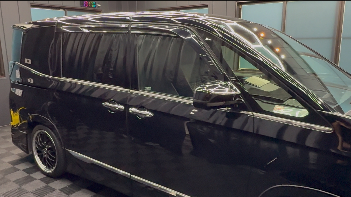 今回のヴォクシーのリア・サイドガラスには、かなり頑固なウロコが付着していました。これを除去するには、専用の研磨剤と技術が必要です。